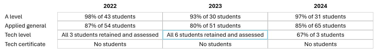 | Students progressing to education, apprenticeships or employment | 2023 leavers: 87% (England average 79%) |